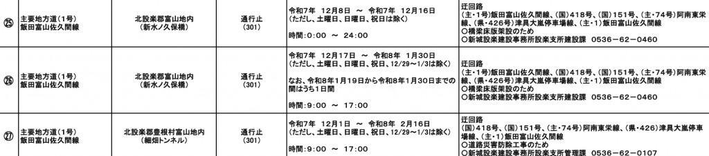 静岡方面から1号線で富山まで向かうことは出来ますが、長野方面に向かわれる方はお気を付けください。