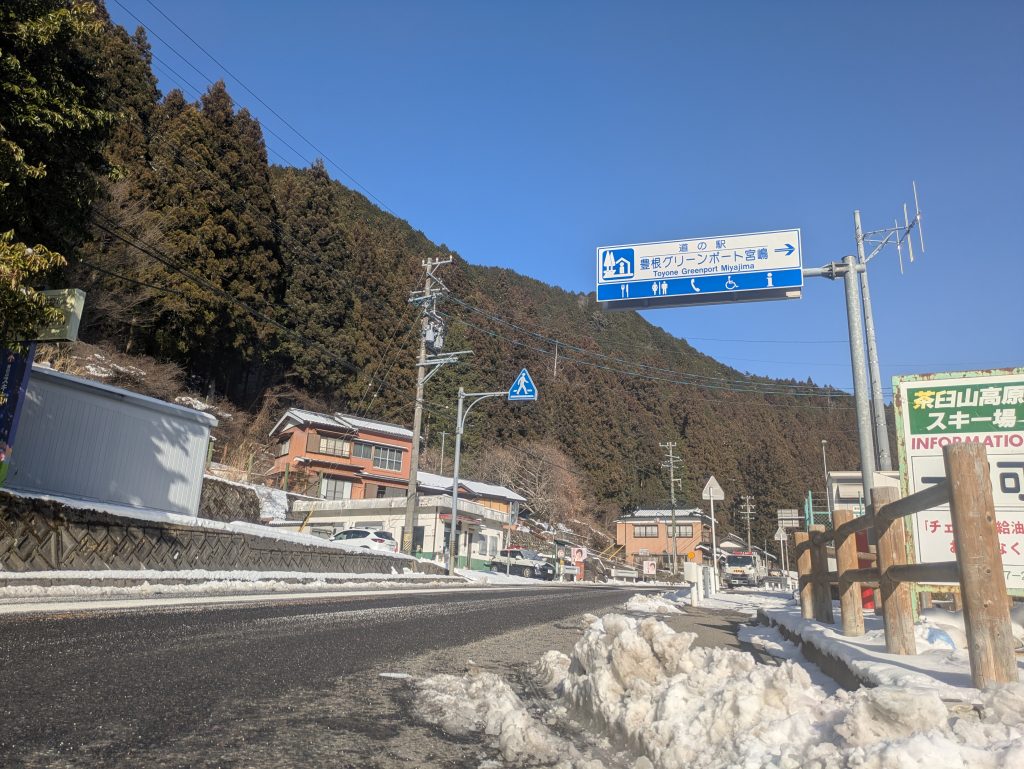 寒波の影響で数日雪が降り積もっていたため、村内各地には雪が残っています。
