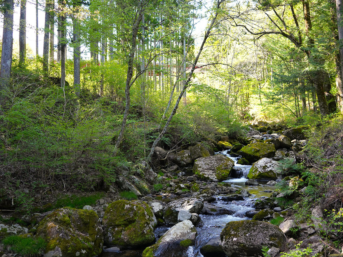 その頃、此処川宇連の地は、足助荘奥郷と称し南朝の味方でした。尹良親王はこの里に駒を進め数日逗留し、馬酔木峠を越えて行きました。鼓が滝で汗を流し、蘇枋の箸が根付いて「はなの木」になった等、古くから言い伝えが残っています。