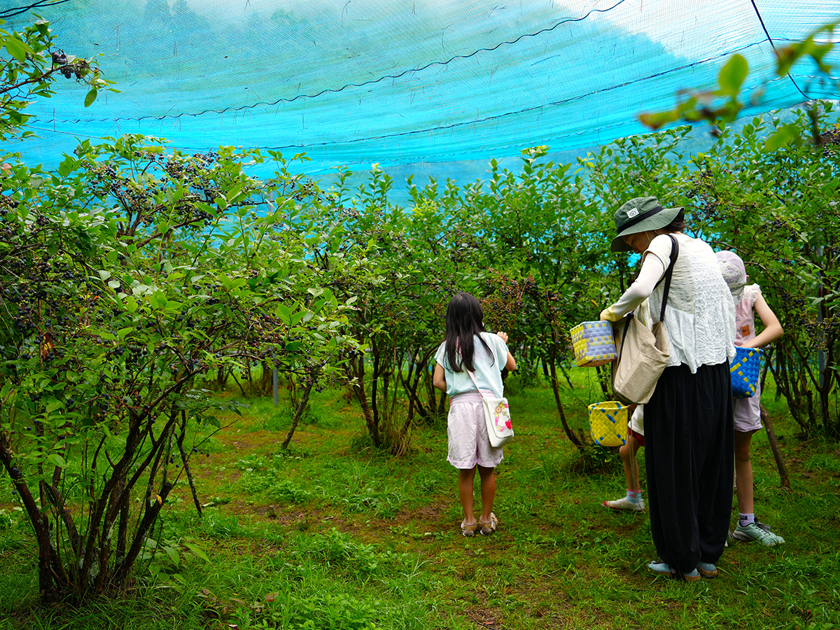 7月~8月初めまではブルーベリーの摘み取り体験が楽しめ、フレッシュなブルーベリーをお土産として購入することもできます。